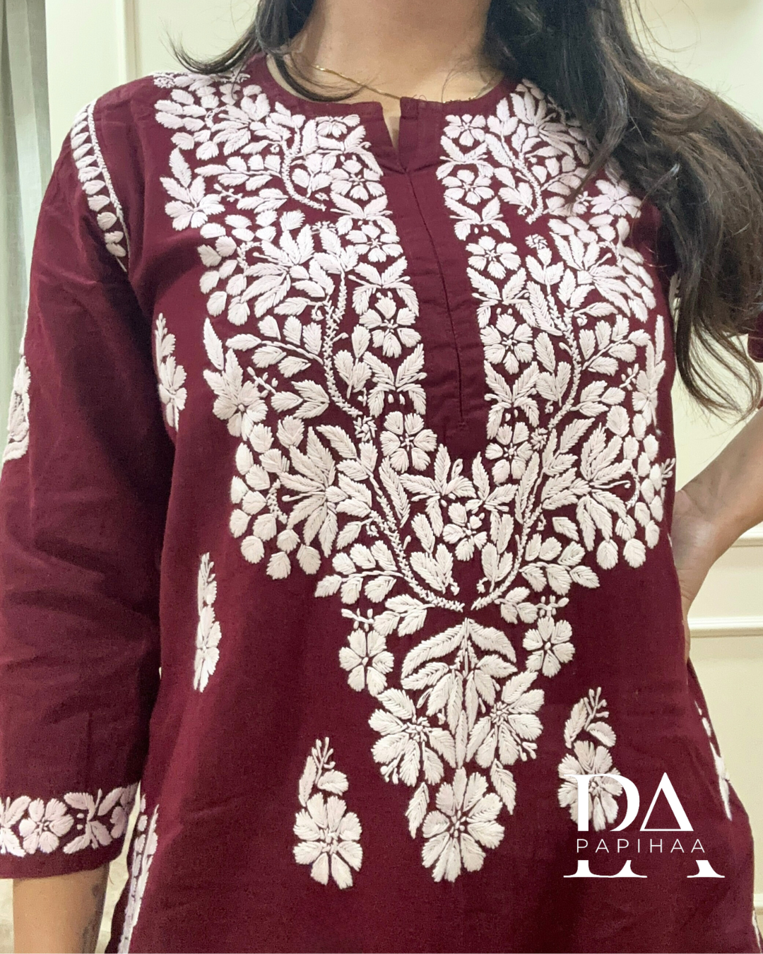 Eshani maroon Cotton 3d Chikankari Kurti