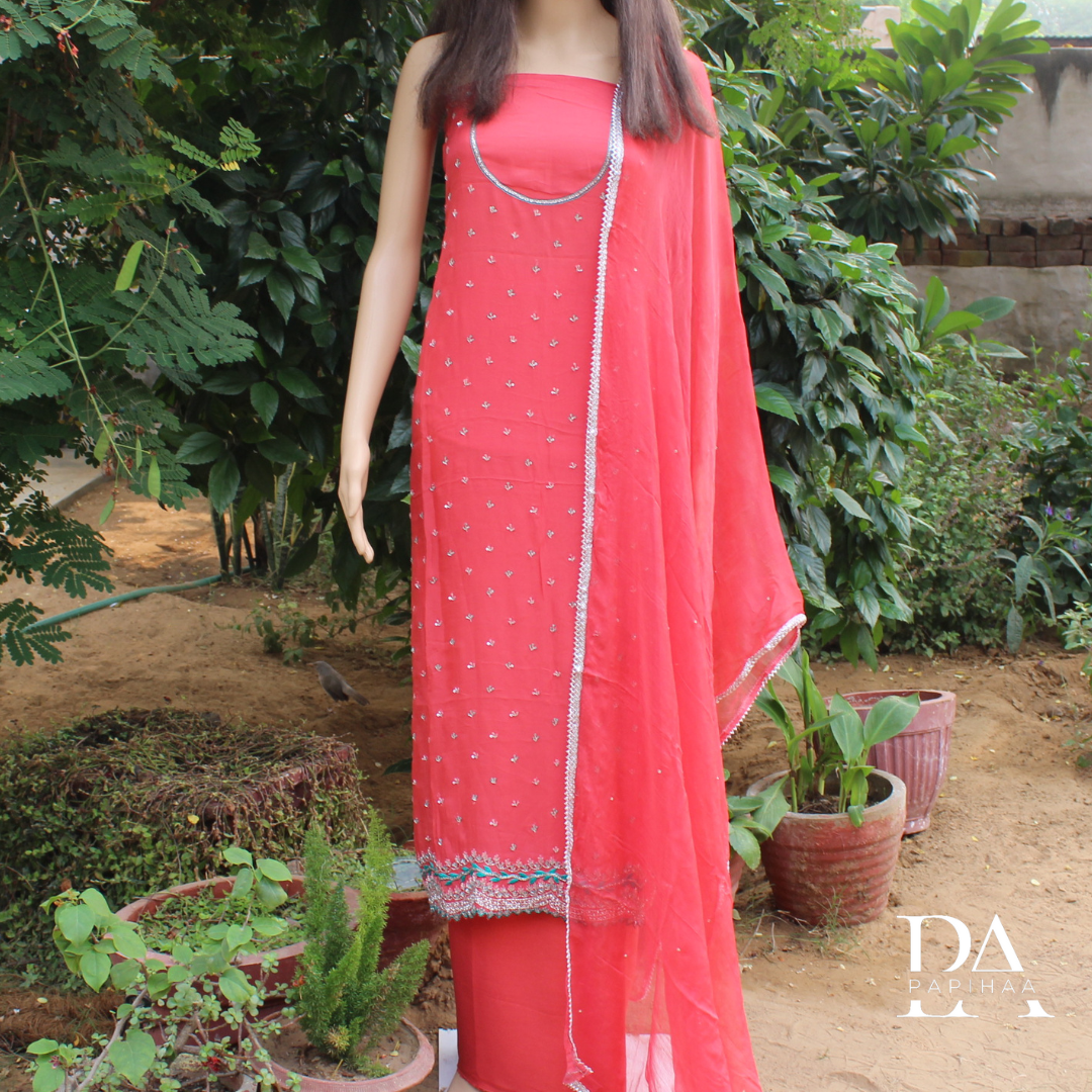 Dupatta: Pure Dupatta with stone work all over and lace work on the edges
