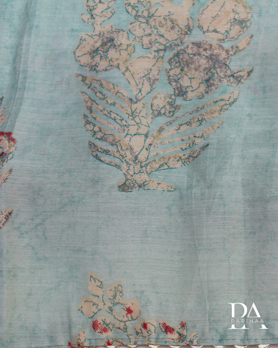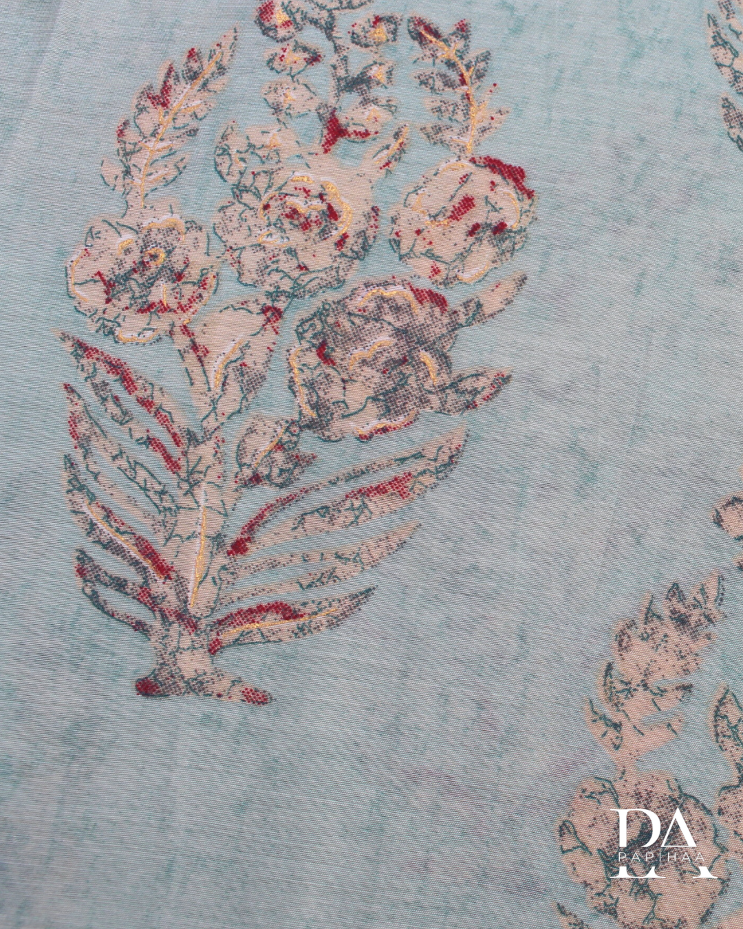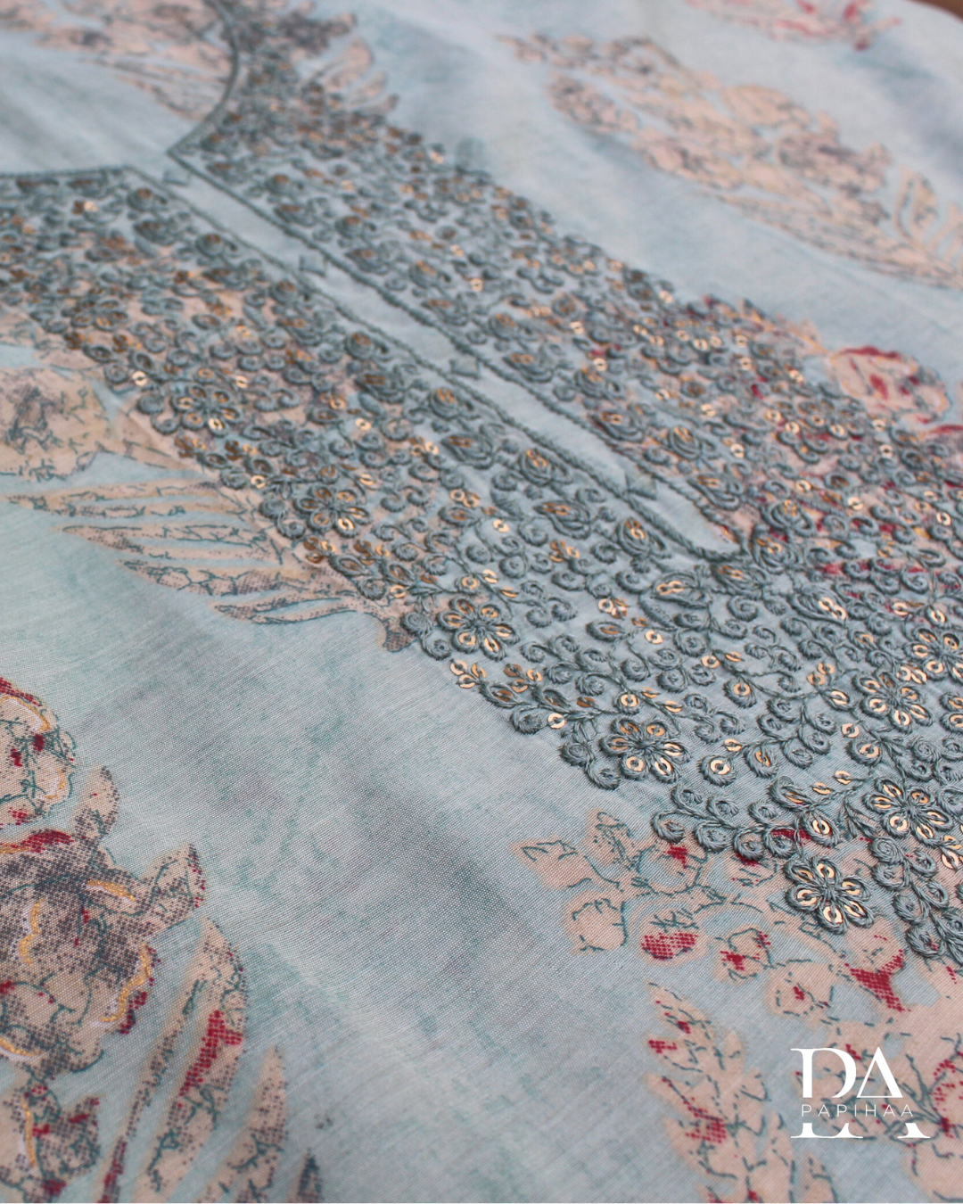 Top fabric : Soft modal kurta fabric, with botanical print, threadwork and sequins