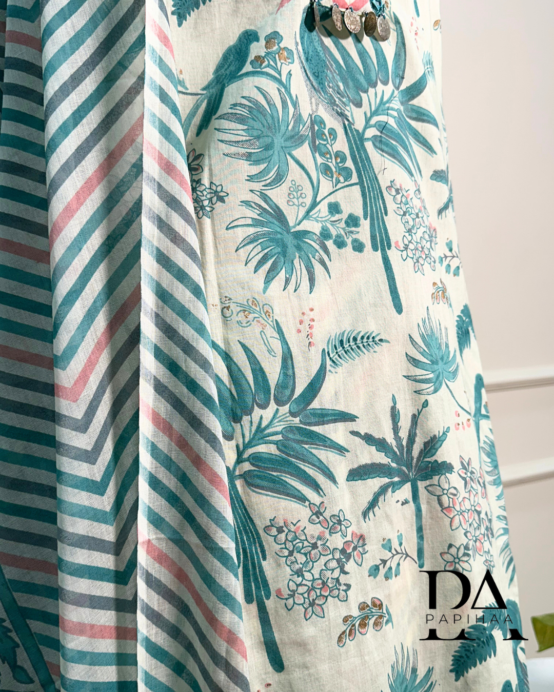 Dupatta: Voluminous flowy cotton floral and stripes, printed dupatta
